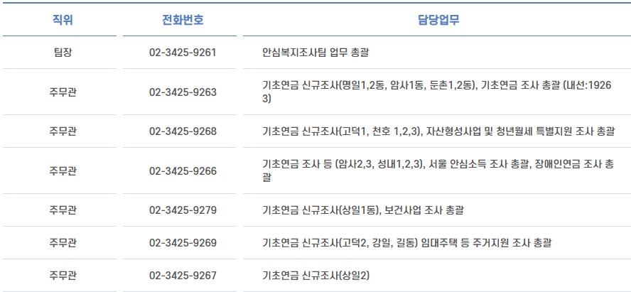 기초복지조사팀 담당자 전화번호