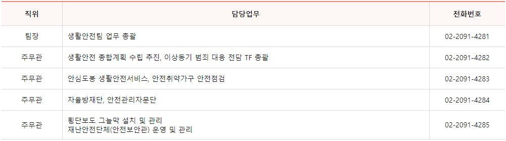생활안전팀 담당자 전화번호