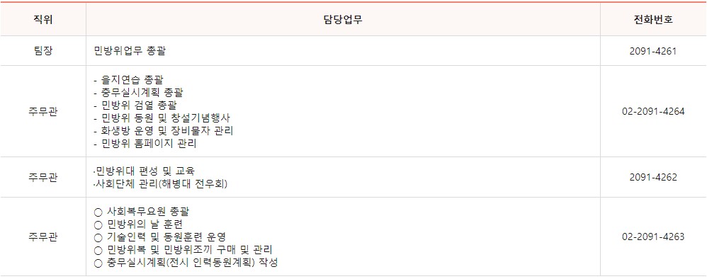 민방위팀 담당자 전화번호