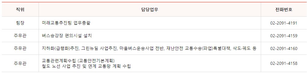 미래교통추진팀 담당자 전화번호